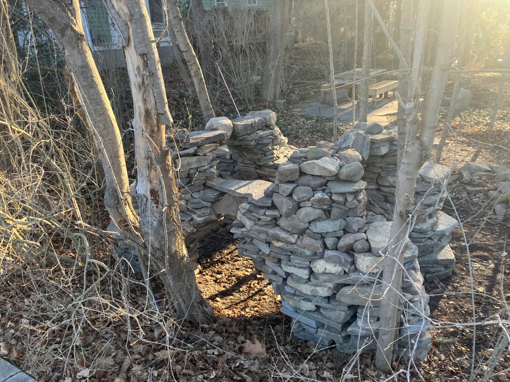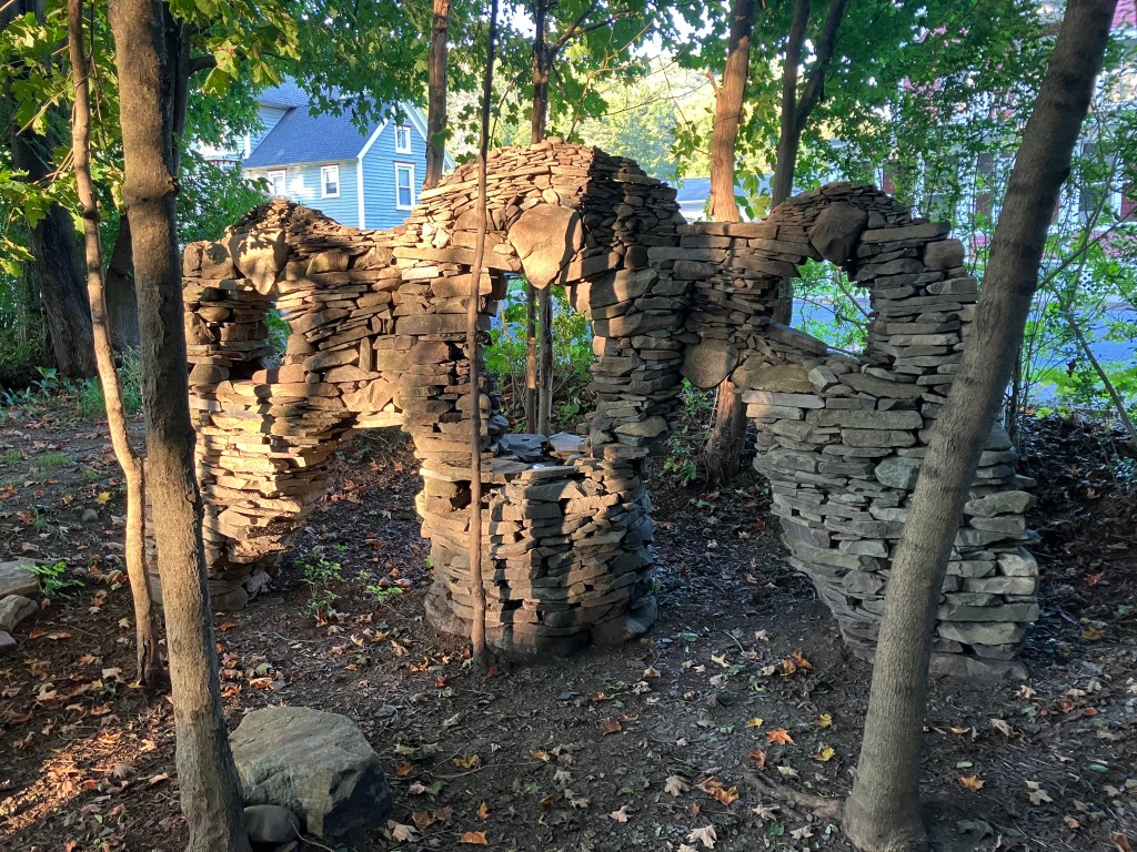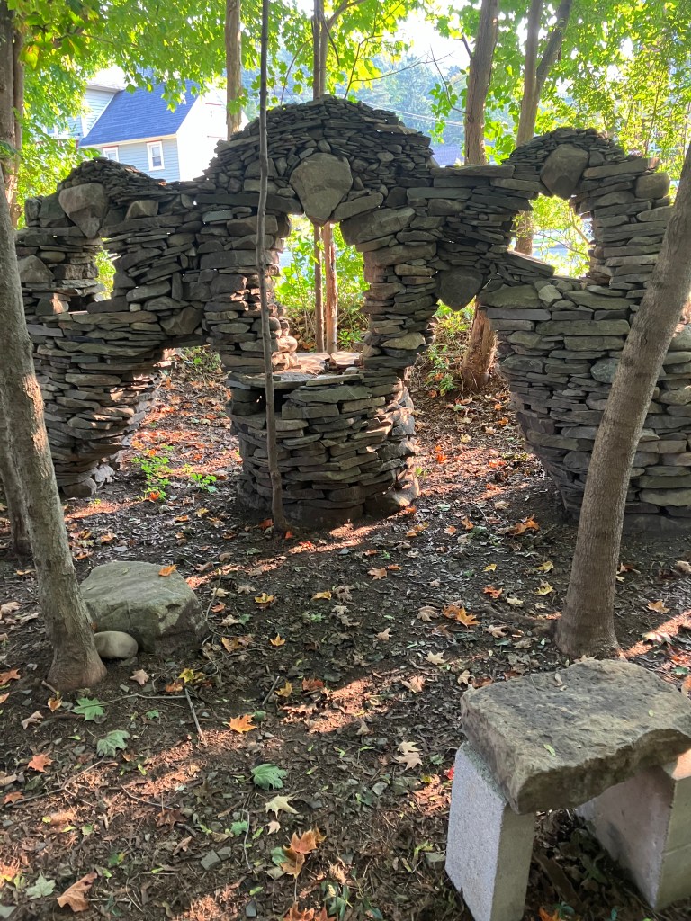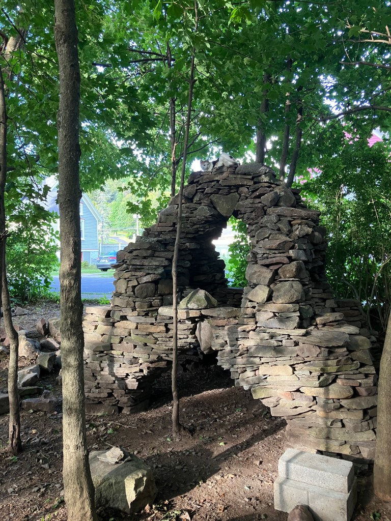 As you can see, the new creation only has four arches instead of five like the previous. That’s because I ran out of rocks. I used them all. I was really hoping to add quite a bit more. If anybody out there happens to have a small pile of rocks to get rid of, you can bring them to my place and add them to my pile.