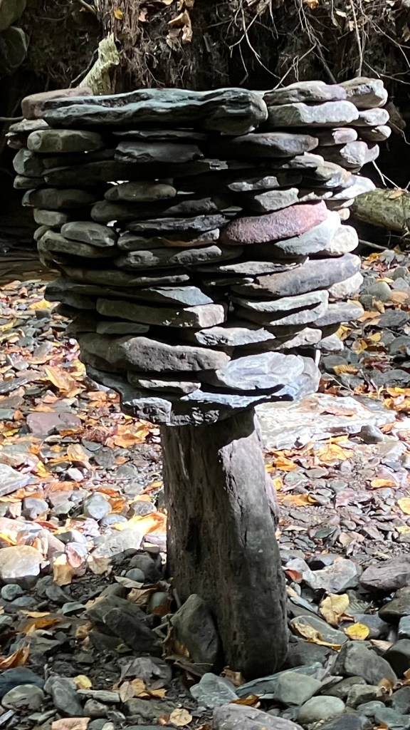 What is Paradise? Where is Paradise? Paradise is the place that makes you happy. For me, at least, Paradise is right there at the end of the precarious path. It’s a meandering creek in the forest surrounded by moss and tree covered gorge walls. It’s not a big gorge and it’s not big creek. On hot midsummer days it slows to a trickle. But In Spring and Fall rains, it rushes like a river. The shoreline is covered with rocks, lots of rocks…. Infinite rocks in Infinite sizes shapes and colors. And me, well, I’m a rock guy. Rocks are the toys that I like to play with and the main medium for my art. Paradise is any place that has what you need to follow your passion.