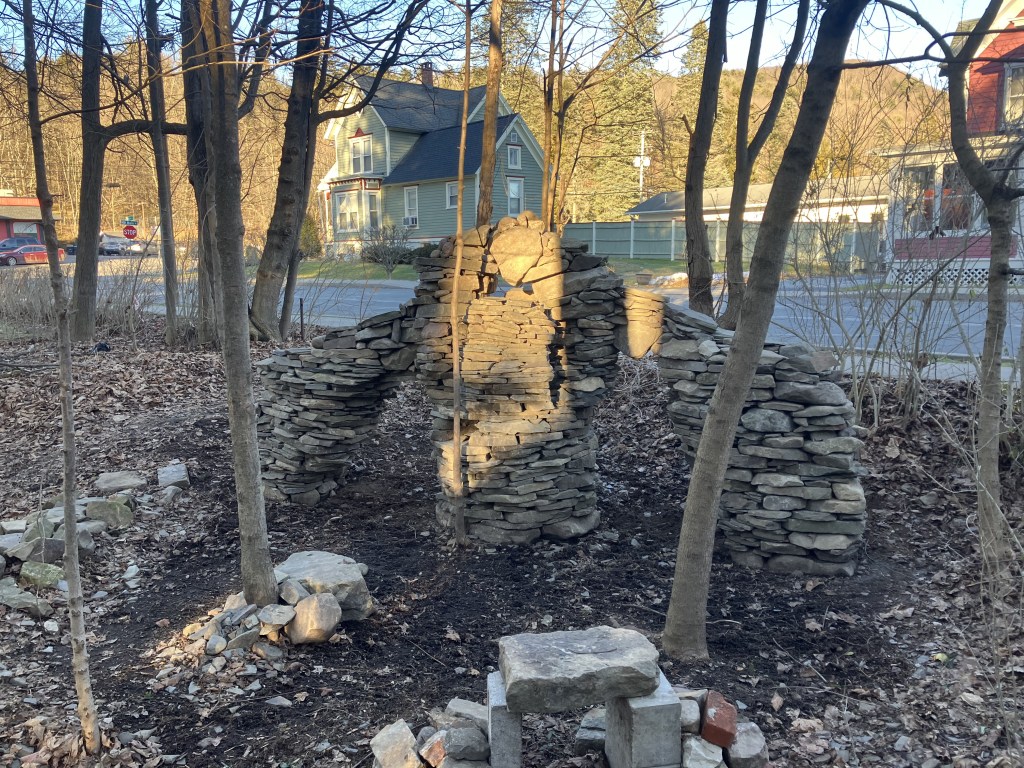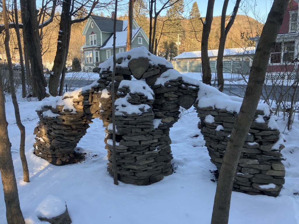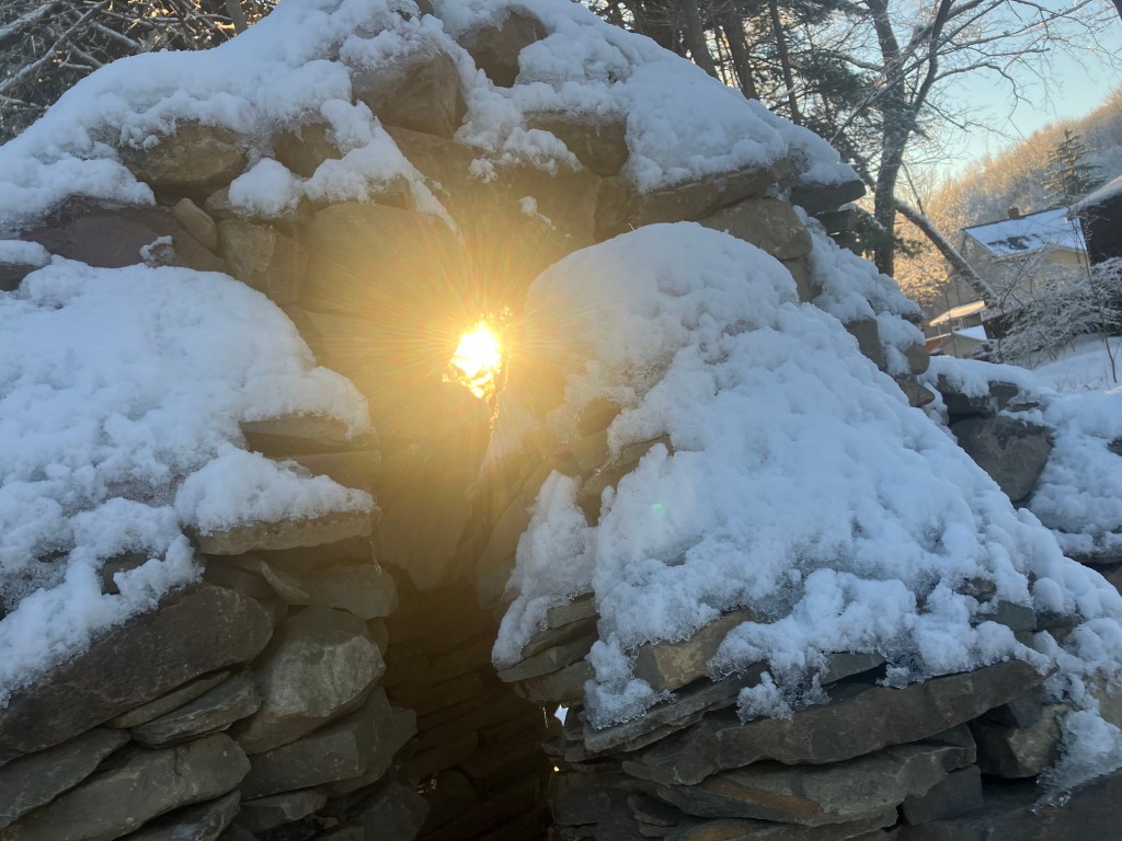 What do you see in the brand new sculpture? Does it look like a symbol of peace? Or something else? I, myself, the creator, only realized what it was on the second morning after it was complete and it was blanketed with snow. But once I saw it, the truth was clear; It’s a stone angel of peace spreading out her wings to rise from the rubble and carry the suffering humans free to safety…. Then again, we all see truth differently don’t we?