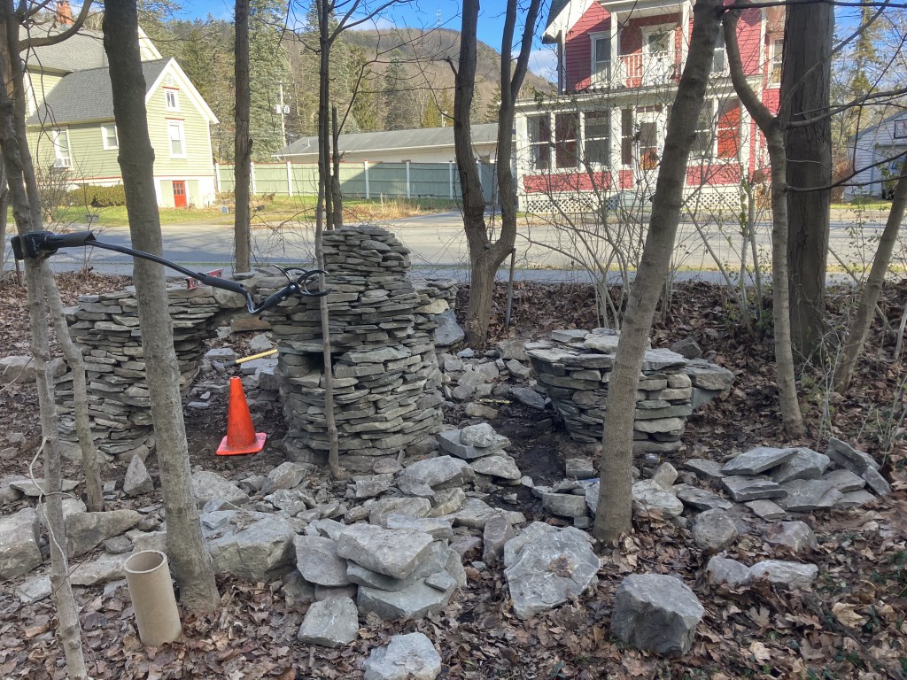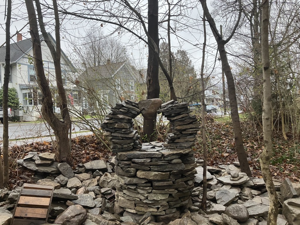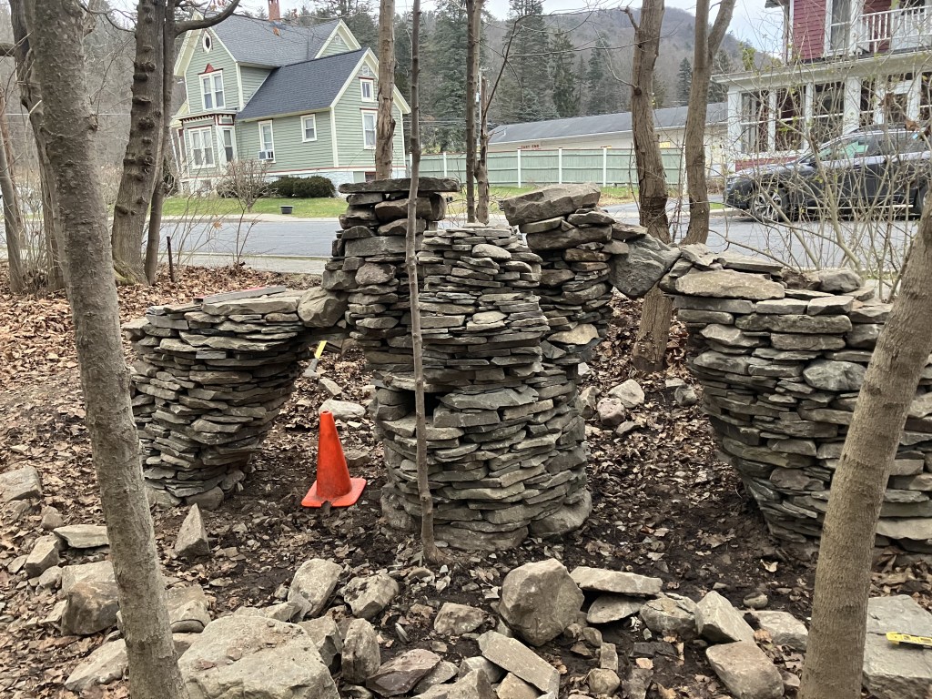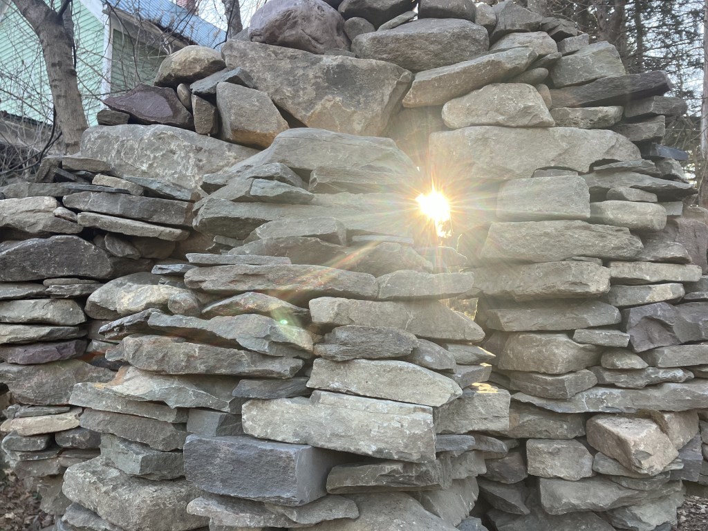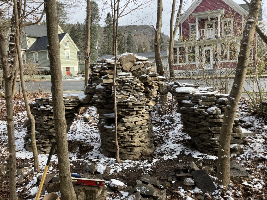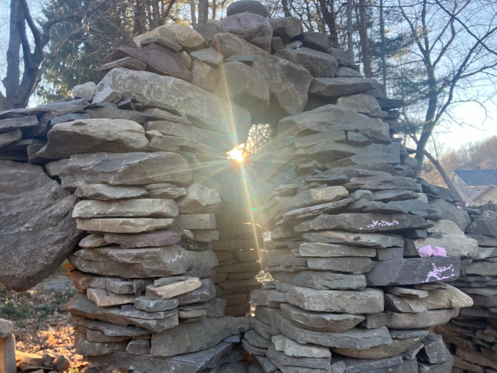 An outside observer or analyzer would probably conclude that my second day on the project was a failure or a waste of time. Bare cold hands moving stone in December and accomplishing nothing. That must be frustrating. To me, however, in the moment, time and place, it didn’t seem like a set back at all. It seemed like a process that I was immersed in trying to accomplish the impossible. I had learned something that day. It wasn’t impossible. I had made the cross and completed the circle. It had only collapsed because of the rough way I yanked out the form. I did it once, I could do it again. Next time, I will just be more gentle when I remove the form.