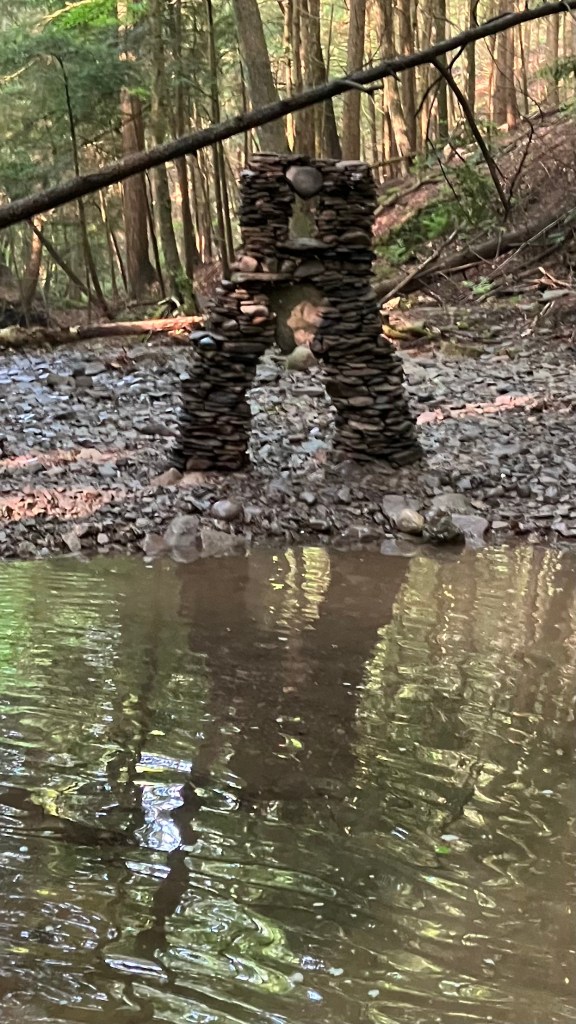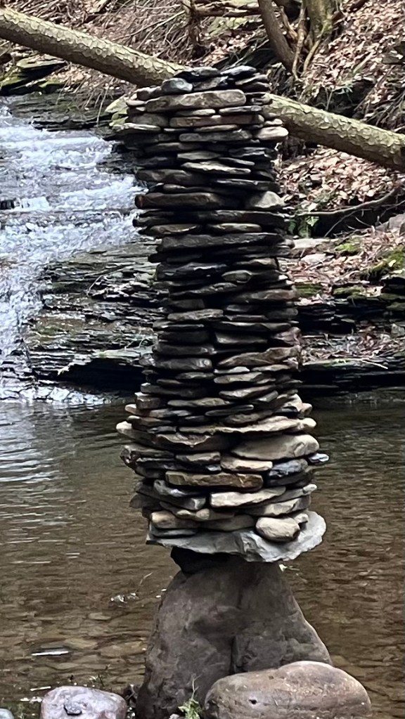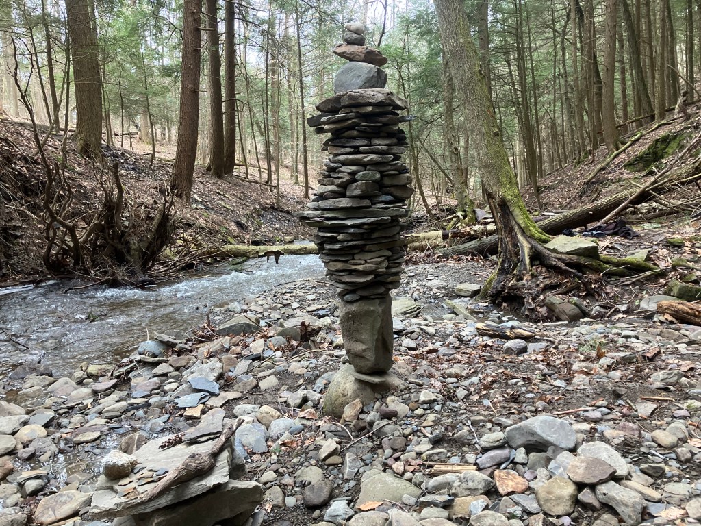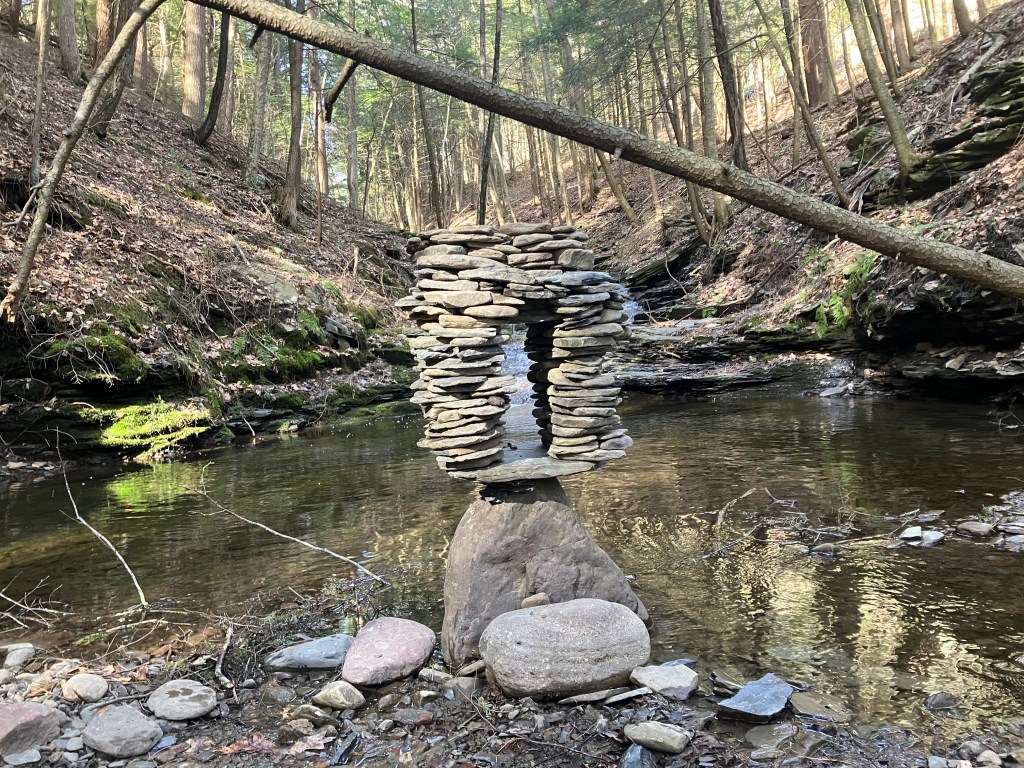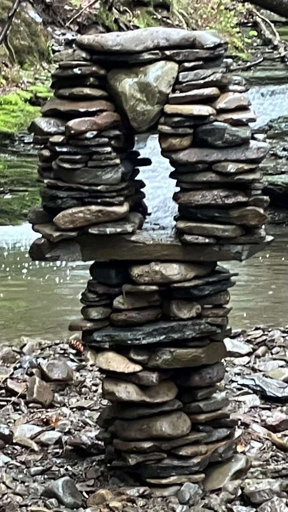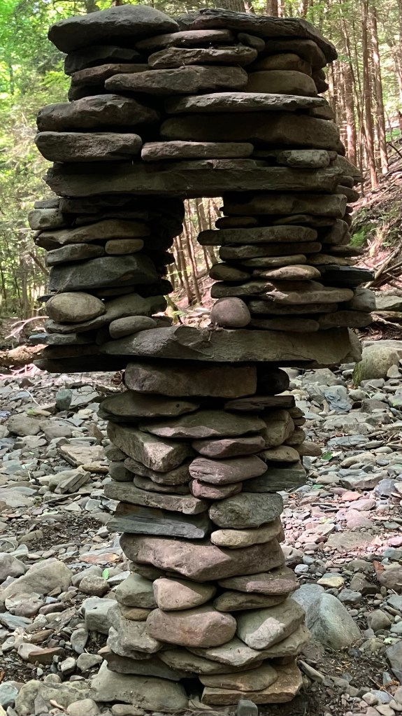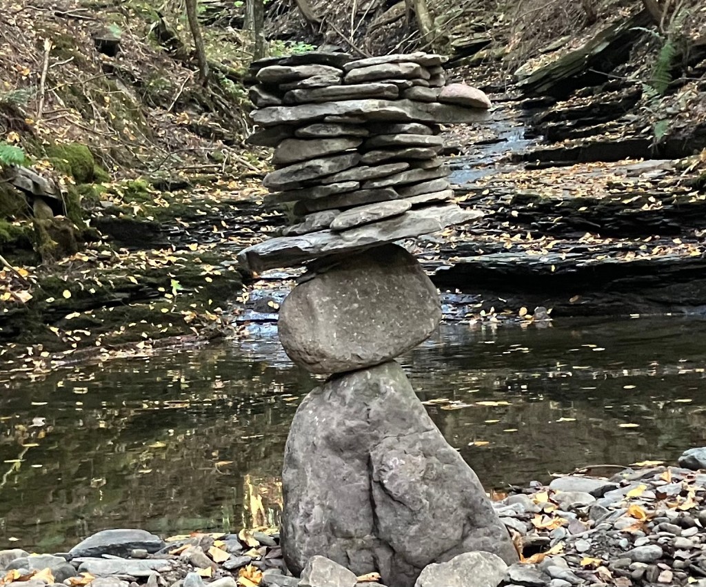 How much fun can you possibly have with a big pile of random rocks? I don’t use mortar or epoxy or super glue or any kind of modern day chemical adhesive. I prefer to work with all natural found fieldstone held together by nothing except the force of gravity. On this page, I will post a rotating gallery of photos of my free-standing gravity bonded stone sculptures. If you would like to see video presentations of the sculptures, please visit The Stoney Rocks Museum page.