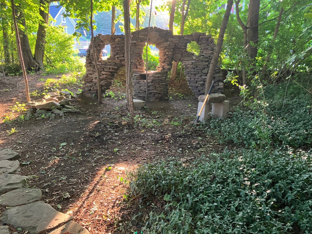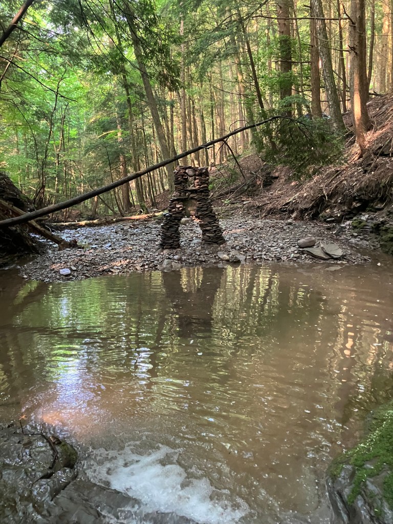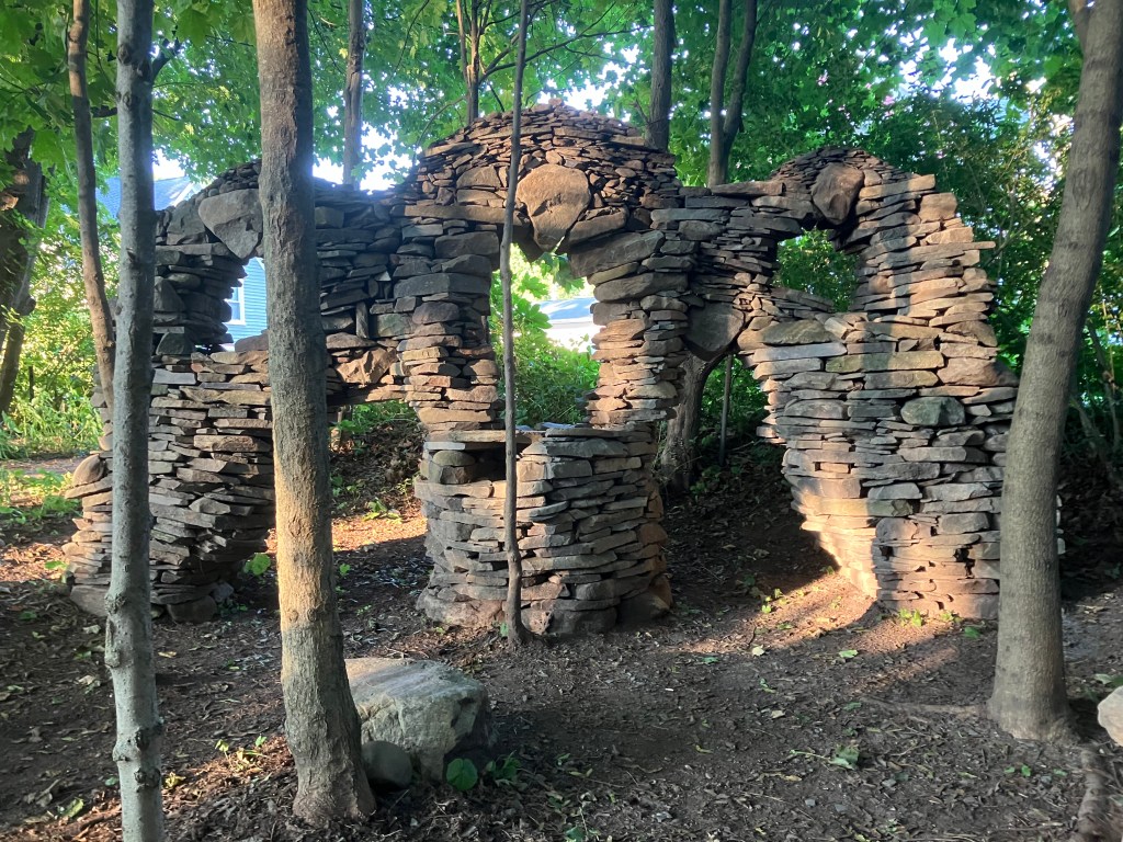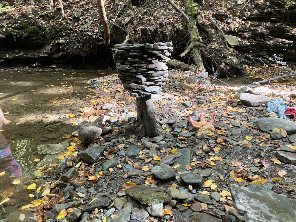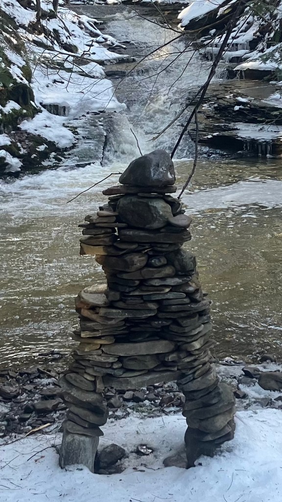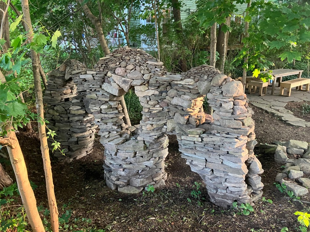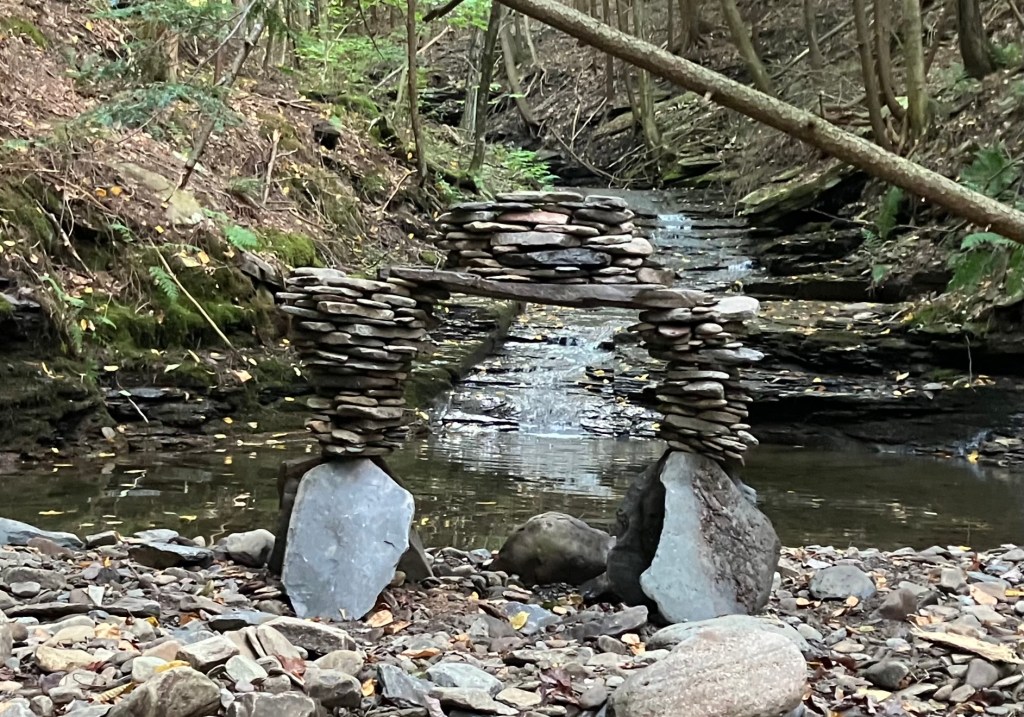 How much fun can you possibly have with a big pile of random rocks? I don’t use mortar or epoxy or super glue or any kind of modern day chemical adhesive. I prefer to work with all natural found fieldstone held together by nothing except the force of gravity. On this page, I will post a rotating gallery of photos of my free-standing gravity bonded stone sculptures. If you would like to see video presentations of the sculptures, please visit The Stoney Rocks Museum page.