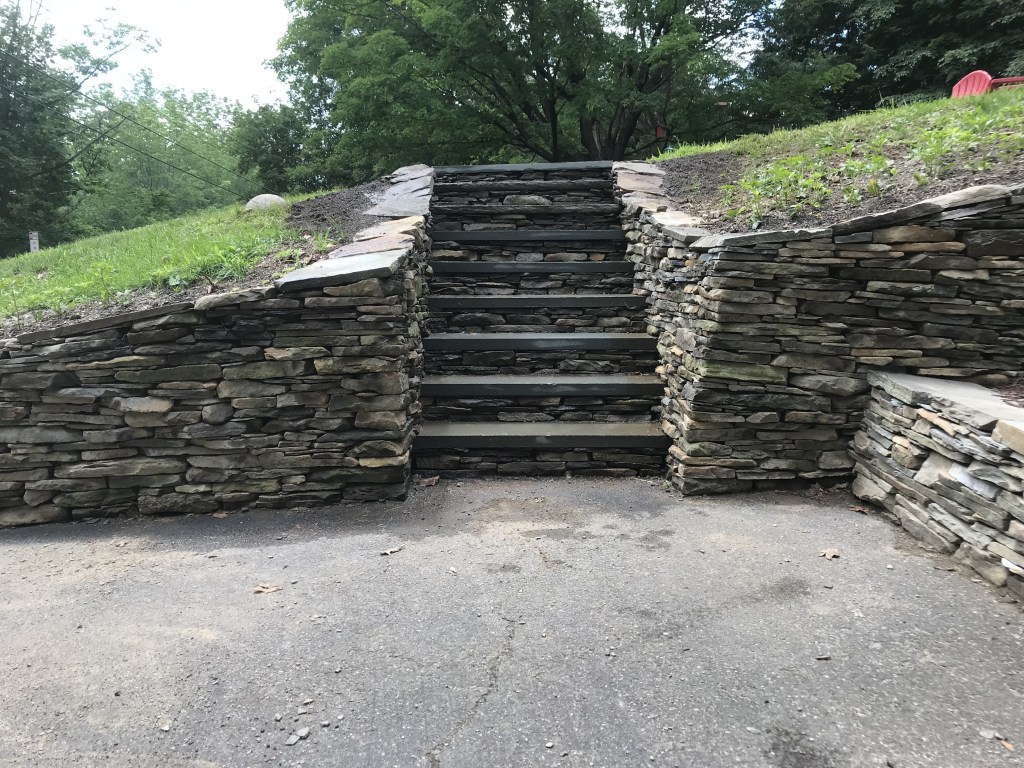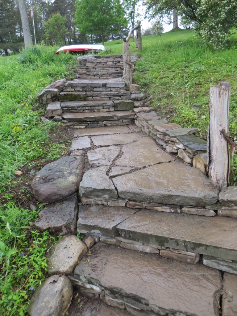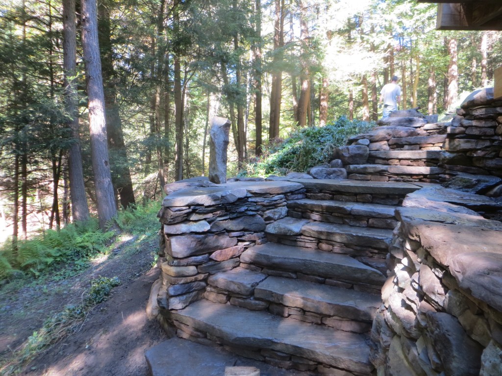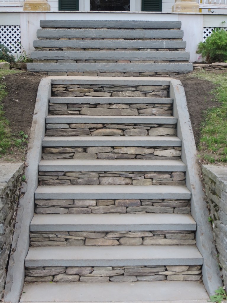 I, myself, love building stone staircases. Each one is a practical work of Art because it is utilized in its created state.. Staircases go somewhere. They lead from point A to point B and then back to A again. Along the way, they look beautiful and feel good to walk on. This page will contain a rotating gallery of some of the staircases I have built. I do not believe that any of of them leads to heaven but they definitely lead to some very nice places. If you want one to enhance the beauty of your property, contact me, and I will put you on the list. contact