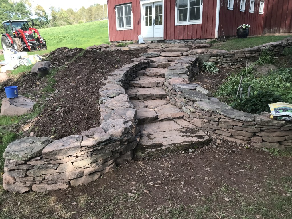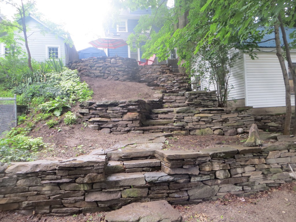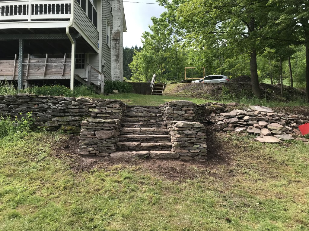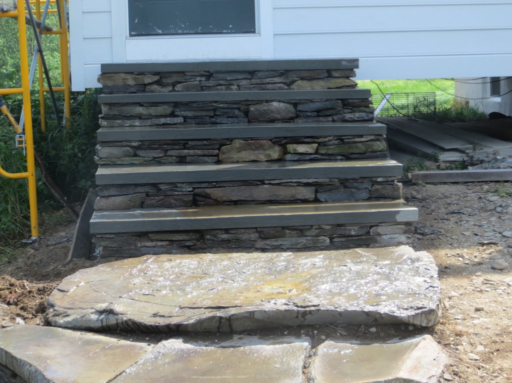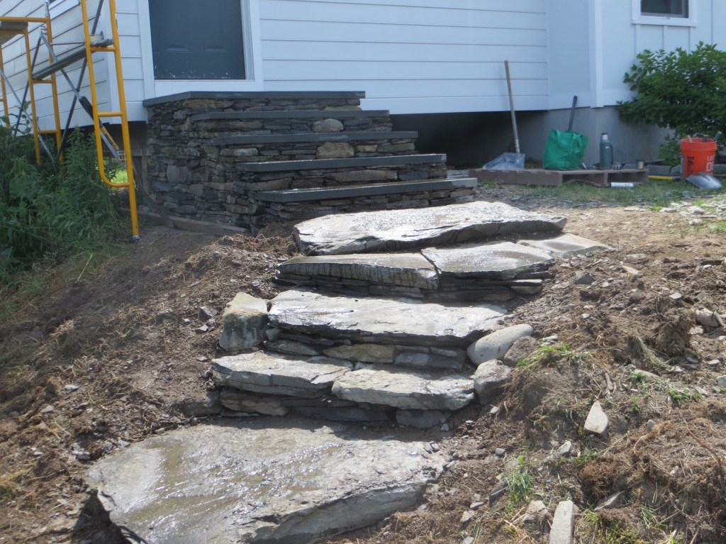I, myself, love building stone staircases. Each one is a practical work of Art because it is utilized in its created state.. Staircases go somewhere. They lead from point A to point B and then back to A again. Along the way, they look beautiful and feel good to walk on. This page will contain a rotating gallery of some of the staircases I have built. I do not believe that any of of them leads to heaven but they definitely lead to some very nice places. If you want one to enhance the beauty of your property, contact me, and I will put you on the list. contact