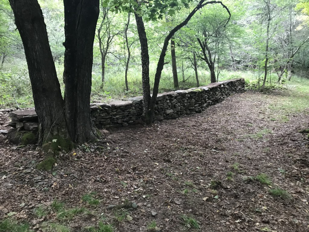 I also enjoy building stone walls as a community activity. That too is what the stone wall workshop is all about. The two day workshop is designed for ten or so students/participants. We work together as a class to complete a stone wall of pre-determined size and shape. Usually it’s an 18 inch tall sitting wall about 40 feet long that serves as a seat for group meetings. But really, the workshop can build any size or shape of wall that the group organizing the class wants as long as there are enough students participating in the workshop to complete the size and shape desired. So if you are involved in a community or an organization or a church group or a business and you are looking for a fun and challenging group activity to make something beautiful and useful on your organization’s property. Contact me and we will set up a stone wall workshop.