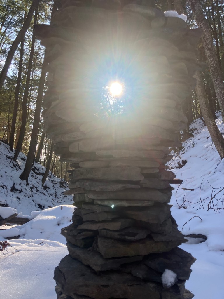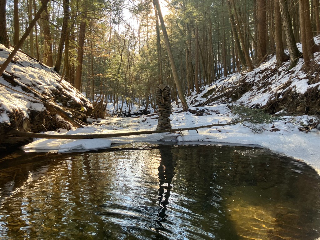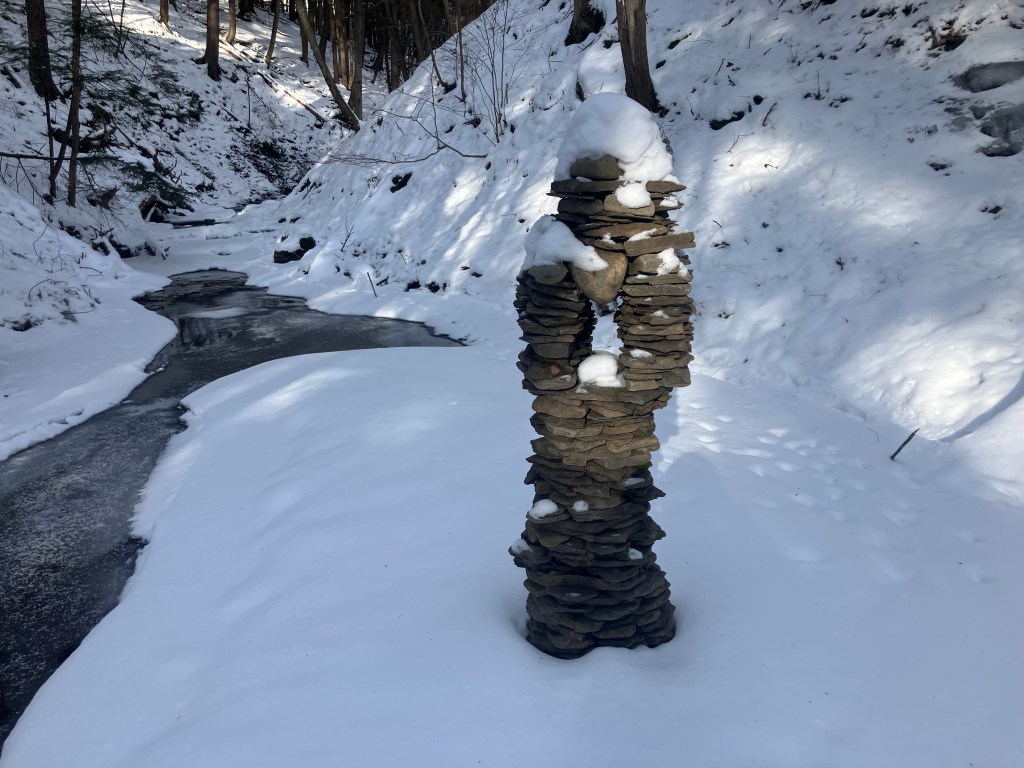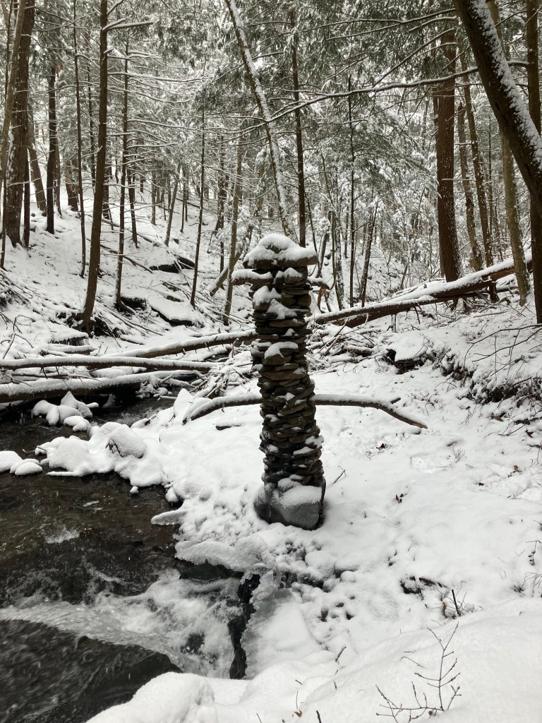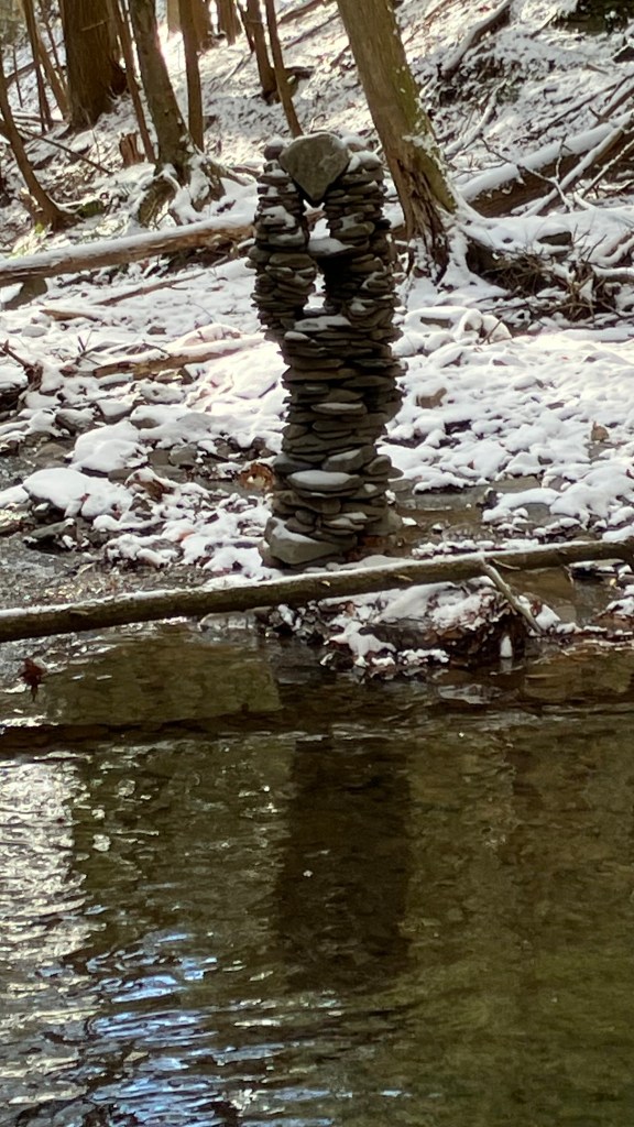 The second amigo of the three amigos was originally created as an Equinox tower because that was the day when it was created: September 21, 2025. He is located at a place where I have built many small towers over the years. Spring rains and floods tend to wash them away because that is the way it goes. But the receding waters always seem to leave behind a new pile of rocks to play with. I like to build towers to celebrate the change of seasons. I had a blank slate and a pile of rocks this year on the Equinox so I made a little masterpiece. It was still standing when I built the other two amigos at the end of November and was still standing on the Winter Solstice and was still standing at the start of 2025. Now, it is the second immigrant friend you will come across If you ever find yourself walking up this particular creek. He represents the middle friend, the equinox, the middle path on the roller coaster of life. Will he make it until the Spring? Follow here to keep track of his evolution in a harsh environment.