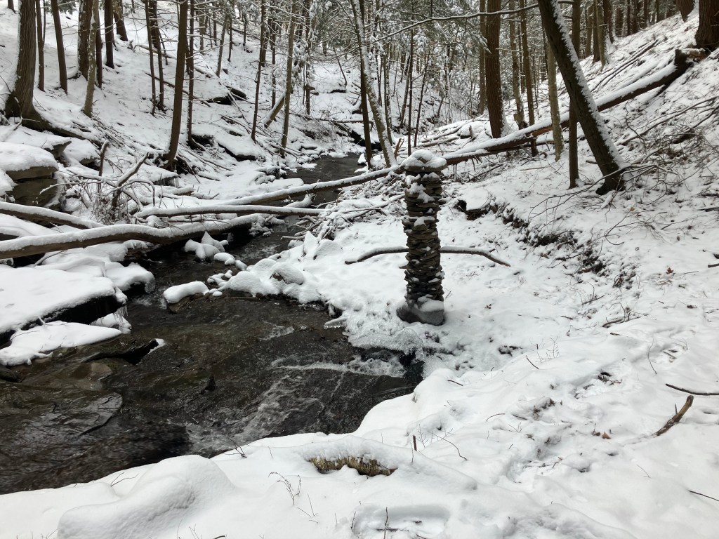 I went back up the Creek again on the very last day of 2025 and the three amigos were all still standing. I will continue to monitor them as the Winter progresses. Will they stay standing until the Spring? What do you think? If you would like to see video of how they continue to evolve in the next year. Sign up for premium content..