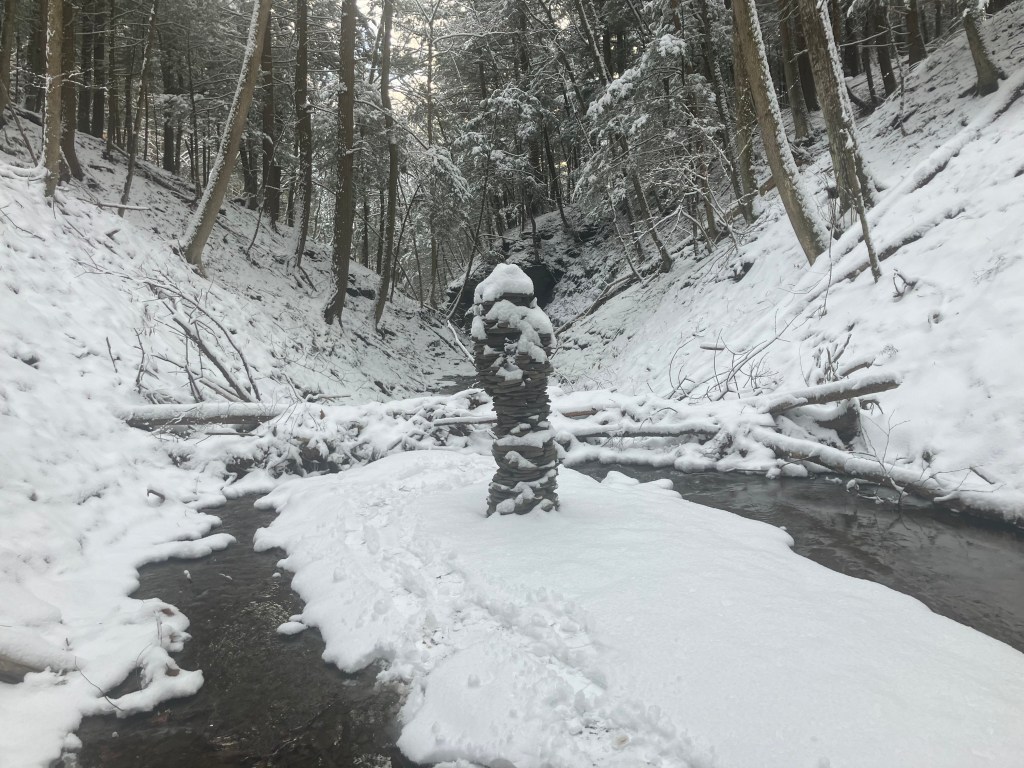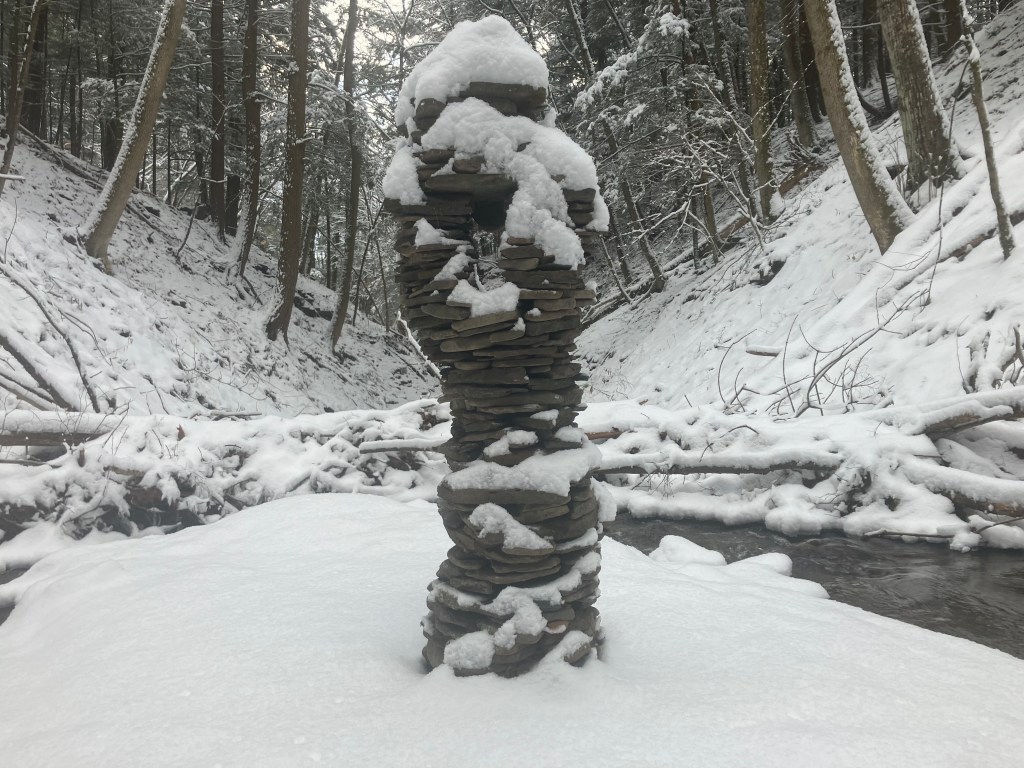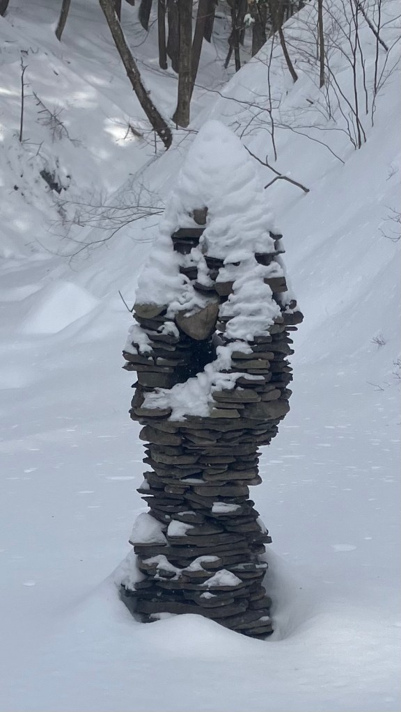I returned to the creek on January 17th and again on the 18th. It was the biggest snow storm of the season. Did the immigrant sculptures stay standing? It was during this same time period that total chaos erupted in Minneapolis as the fascist army from the police state descended upon the city to reign state terror upon the population. Two protesters were murdered and the television networks are acting like it’s the unfortunate outcome from a problematic policy implementation rather than the inevitable result of an insane unamerican out-of-control criminal enterprise. The United States is an Immigrant Nation. The Institution of ICE and Donald Trump’s Mass Deportation Program are a disgrace to the American people. May the Immigrants of the world keep on coming no matter how much snow and ICE is dumped upon them! They are all welcome in my America.