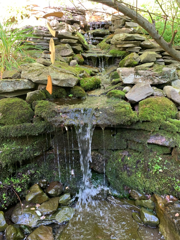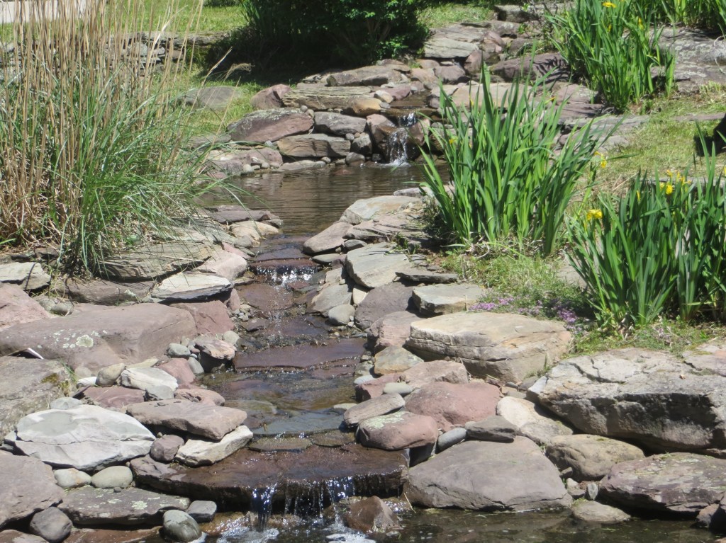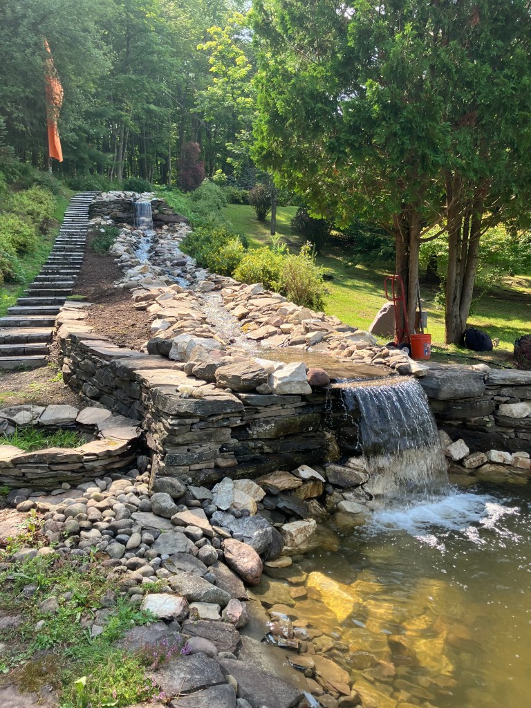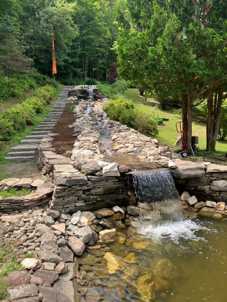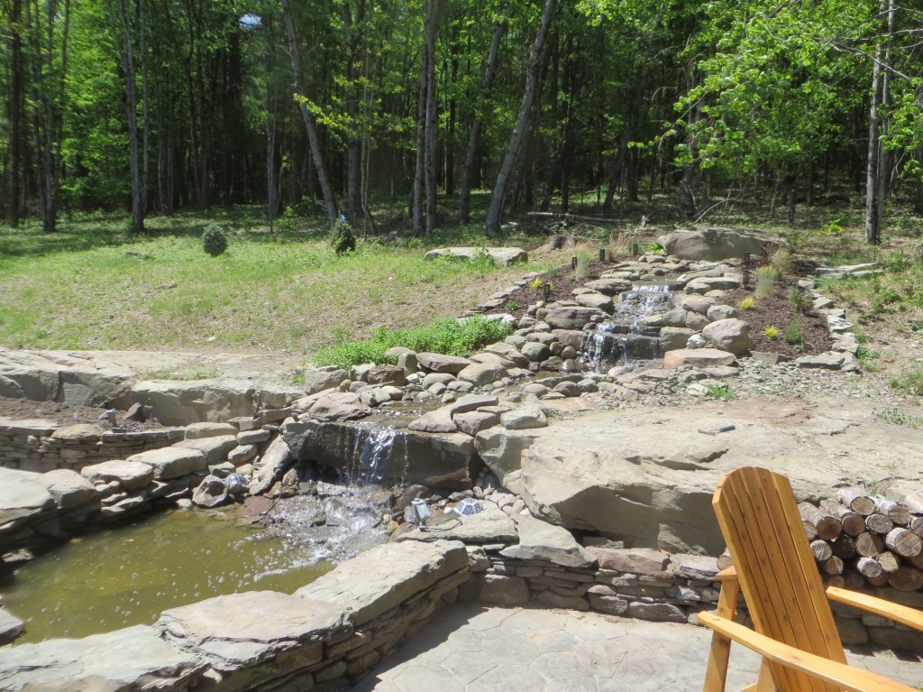 Sometime around the turn of the century, I started making waterfalls. Big waterfalls and small waterfalls and several sizes in between. There is something philosophically profound about the process and the stonework is fun. But there is also something that is slightly problematic. I’m not really fond of the necessary mechanical accessories and all the product purchasing requirements (pumps, filters, liners, lights, fountains, doodads and whathaveyous).