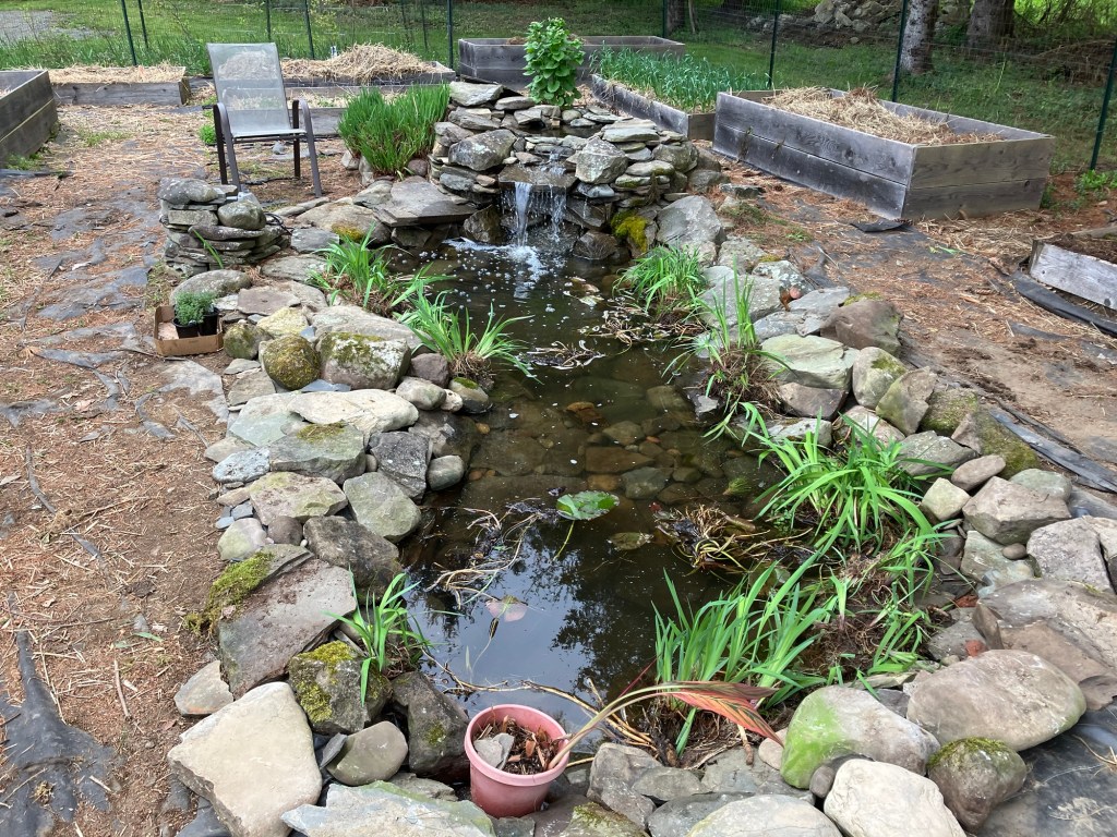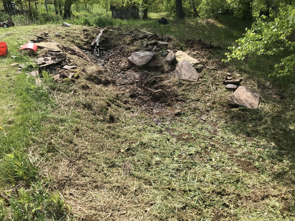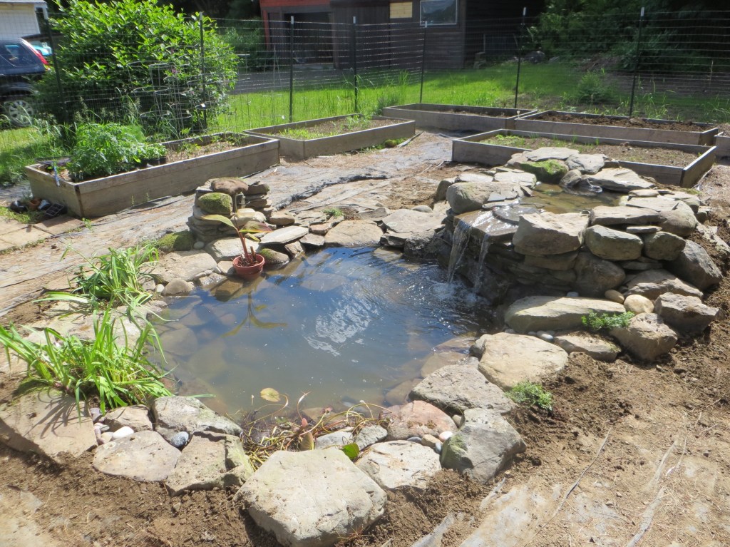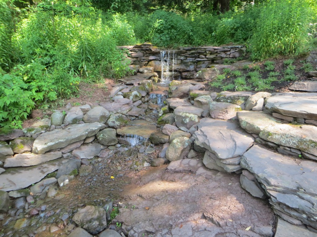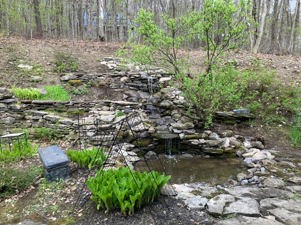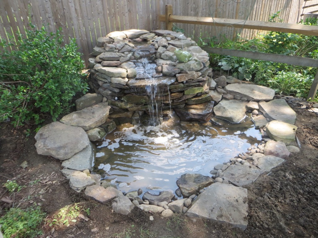 Sometime around the turn of the century, I started making waterfalls. Big waterfalls and small waterfalls and several sizes in between. There is something philosophically profound about the process and the stonework is fun. But there is also something that is slightly problematic. I’m not really fond of the necessary mechanical accessories and all the product purchasing requirements (pumps, filters, liners, lights, fountains, doodads and whathaveyous).
